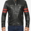 RS J1 Men Genuine Leather Cafe Racer Jacket-Black