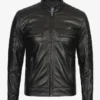 RS J5 Men Genuine Leather Cafe Racer Jacket-Black